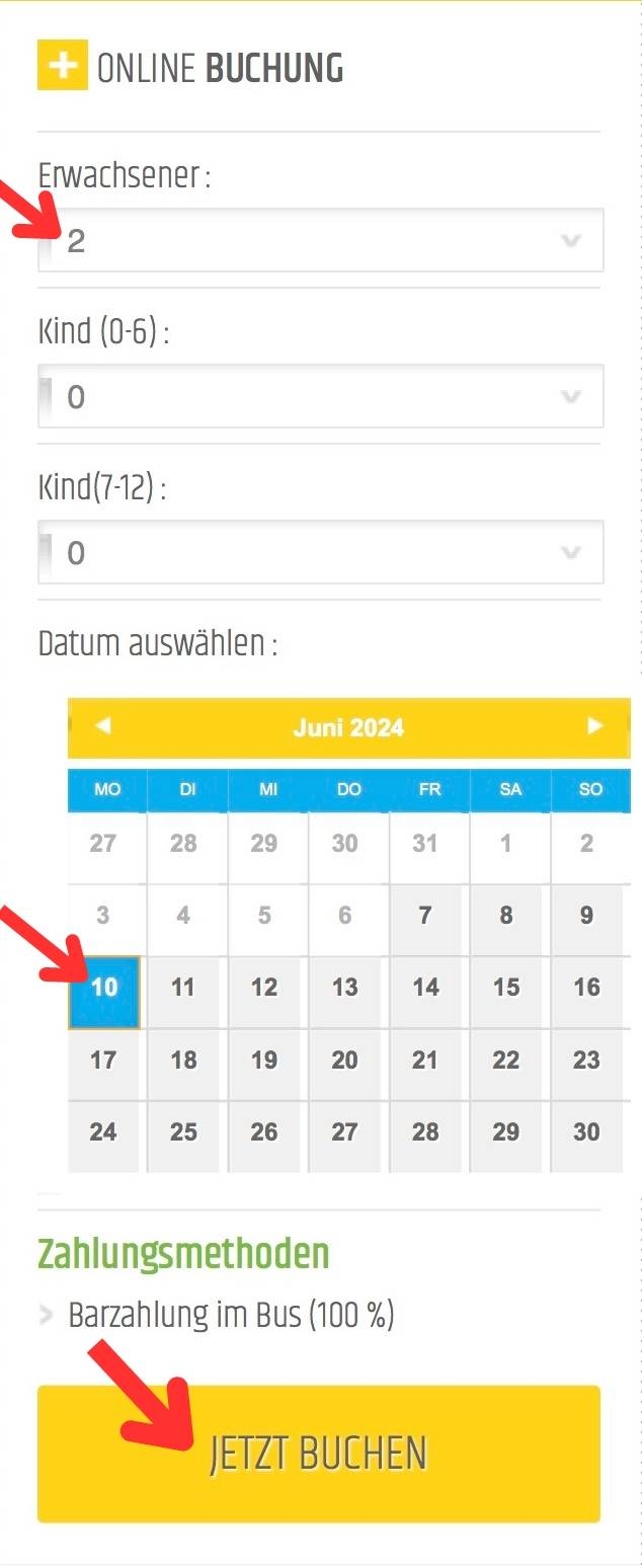 WIE BUCHT MAN? (JETZT BUCHEN, IM BUS BEZAHLEN)